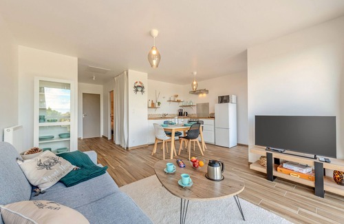 In Landéda, the holiday apartment Les Terrasses de la Palud Babord offers an excellent view of the Atlantic. The 50 m² property consists of a living room with a sofa bed for 2 people, a kitchen, 1 bedroom and 1 bathroom and can therefore accommodate 4 people. A baby cot is also available. This accommodation does not offer: Wi-Fi, air conditioning and towels. This vacation rental features a private terrace for relaxing evenings.