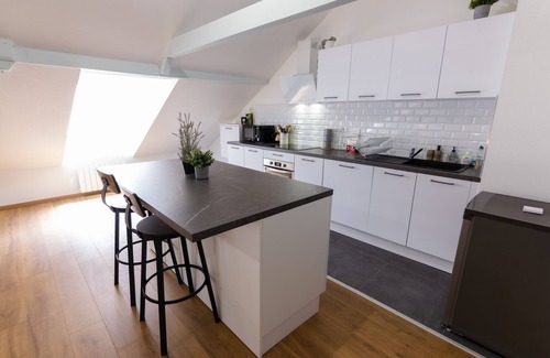 Apartment located a te the city center is located in Mulhouse. Apartment located a te the city center provides accommodation, featuring Bedding/Linens, Wellness Facilities, Fireplace/Heating, among other amenities. This Apartment features Bedding/Linens, Wellness Facilities, Fireplace/Heating, to make your stay a comfortable one.