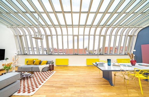 Welcome to your stunning new home in the heart of Berlin! This beautiful apartment boasts a unique glass roof that offers breathtaking views of the iconic Rosenthaler Platz, providing a truly unparalleled living experience. The interior is designed in the iconic Bauhaus style, marrying functionality with clean lines and striking aesthetics. The apartment is fully equipped with all the modern amenities you need to feel right at home, from high-speed internet to state-of-the-art kitchen appliances. And with its central location, you'll have easy access to all the best that Berlin has to offer, from world-class restaurants and nightlife to cultural attractions and museums. In short, this apartment is the perfect choice for anyone looking for a stylish, comfortable, and convenient home in one of Europe's most exciting cities.
