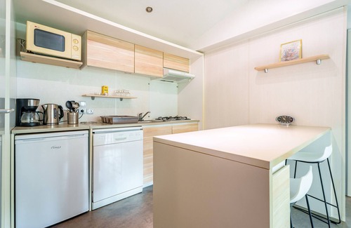 The apartment Lydia's Mobile Home Am Europa-park 1 in Boofzheim offers 28 m² of space for up to 4 guests. During your stay, you have 1 bedroom and 1 bathroom at your disposal. The apartment is accessible via 4 steps. A fully equipped private kitchen is available. Private amenities include a covered terrace, a barbecue, a fan, a TV, and your own workspace.