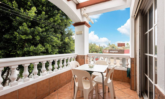 The holiday apartment Casa Manoli is located in Málaga and boasts a beautiful view of the mountain. The 84 m² property consists of a living room with a sofa bed for one person, a well-equipped kitchen, 2 bedrooms and 1 bathroom and can therefore accommodate 4 people. Additional amenities include high-speed Wi-Fi (suitable for video calls) with a dedicated workspace for home office, a TV, air conditioning, a fan as well as a washing machine. This property features a private outdoor area with a covered terrace and balcony.