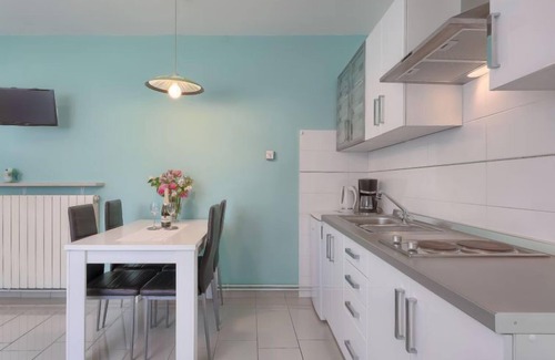 2-room apartment 32 m2, on the ground floor. Beautiful and cosy furnishings: living/dining room with satellite TV (flat screen), air conditioning. Exit to the garden. 1 room with 1 french bed (160 cm, length 200 cm). Open kitchen (2 hot plates). Shower/WC. Air-conditioning (extra). Terrace furniture. Facilities: Internet (WiFi, free). 1 small pet/ dog allowed. UP/I-335-03/15-01/122