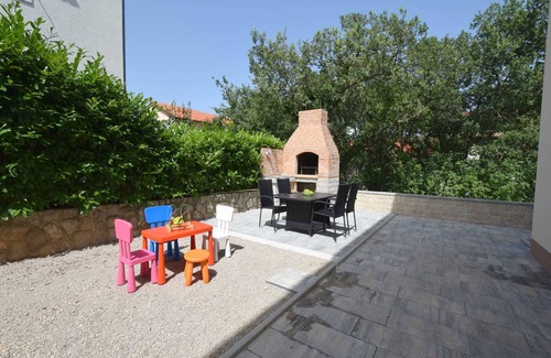 Apartment Medna A3 is located on the first floor of a modern apartment house, which is located in a quiet location next to a bicycle path and a promenade, in the picturesque tourist town of Čižići on the island of Krk. With its modern decoration and comfortable facilities, this holiday home provides an ideal refuge for families with children. The island of Krk, known for its natural beauty, offers a wealth of activities, and the Medna A3 apartment is located within easy reach of several attractions. The popular Soline beach, known for its medicinal mud, is only 800 meters away, while the island's attraction - the Biserujka cave, is only 900 meters away. The apartment Medna A3 is located on the first floor of the house and offers a well-equipped kitchen, a spacious living room, two comfortable bedrooms with a double bed, a modern bathroom with a shower, and a pleasant balcony. Guests can enjoy additional amenities such as satellite TV, free Wi-Fi access, and air conditioning that will ensure a comfortable stay. For all lovers of grilling and open air, there is a shared barbecue in the garden, where guests can also use the dining room. A parking space is provided in front of the house, providing convenience for guests who come with their vehicles. It is important to note that pets are not allowed in this facility. Overall, the Medna A3 apartment provides a perfect combination of comfort, modern elegance, and the natural beauty of the island of Krk, making it an ideal choice for a relaxing family vacation.