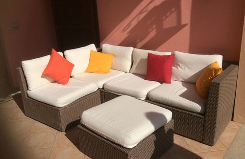 Located on the ground floor the apartment has a large terrace with a garden teak table. 8 seats, chairs and an imitation pine living room. A second garden is located at the rear of the building, where there is a brand new bbq.