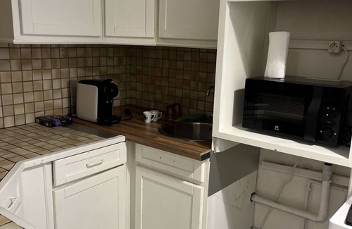 Prepare a home-cooked meal in the kitchen, complete with a stovetop, a refrigerator, a coffee maker, and a microwave. Bathroom amenities include a hair dryer, toilet paper, and soap. Other amenities at this 1-bedroom, 1-bathroom rental include bed sheets, heating, and a dining table.