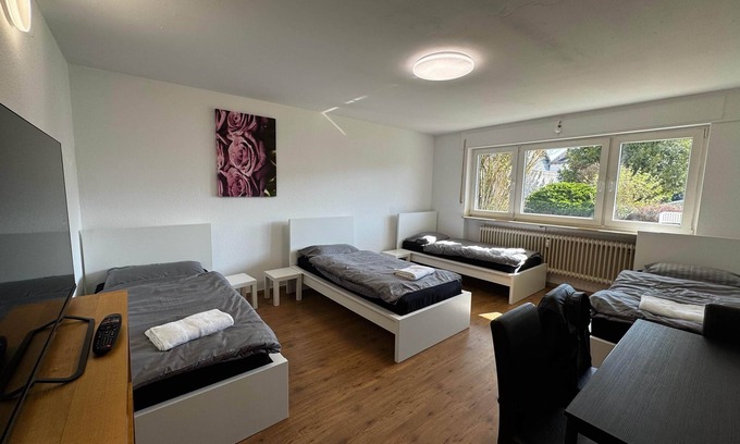 Diese wunderschöne und modern ausgestattete Wohnung in Niedernhausen ist die ideale Unterkunft für Gruppen, Familien oder Geschäftsreisende. Mit ihrer erstklassigen Lage, umfassenden Ausstattung und dem komfortablen Ambiente wird sie all Ihren Erwartungen gerecht. Buchen Sie noch heute und erleben Sie einen unvergesslichen Aufenthalt!