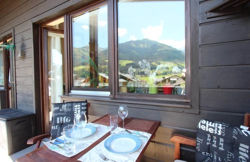 The apartment, with an area of approximately 52 m², is composed of a bright bedroom, a spacious bedroom/living room with a dining area, a high-end rustic-style kitchen, then a new bathroom equipped with a glass shower, WC and underfloor heating. You can, on the beautiful balcony with an area of approx. 16m², enjoy the magnificent view of the mountains and spend pleasant moments enjoying the sun. You have public parking spaces in front of the house. Storage for skis and bicycles is also available.
