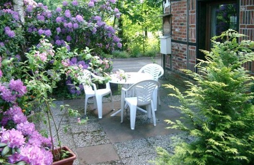 The cozy duplex apartment is located in a quiet rural location and is suitable for 2 persons. On the ground floor there is a kitchen with additional seating area and bathroom. Upstairs is the bedroom. Also the guests have a terrace - very idyllic location - available. You are also welcome to use our garden.
