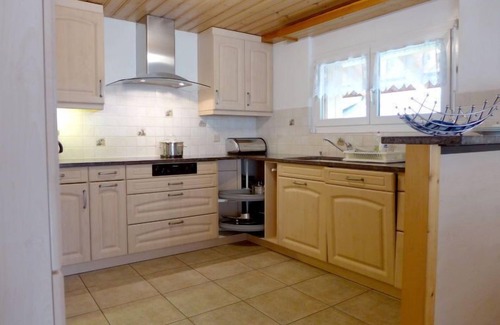 4-room apartment 120 m2 on 1st floor. Spacious and bright, very comfortable and cosy furnishings: open large living/dining room 36 m2 with panoramic window with Scandinavian wood stove, cable TV, flat screen and DVD. Exit to the balcony. 1 large room 17 m2 with 1 double bed (2 x 90 cm, length 200 cm). 1 room 14 m2 with 2 beds (90 cm, length 200 cm). Exit to the balcony. 1 room 13 m2 with 1 pull-out bed (2 x 90 cm, length 200 cm). Exit to the balcony. Large, open kitchen (oven, dishwasher, 4 ceramic glass hob hotplates, microwave, freezer, electric coffee machine, steamer) with small bar. Shower/WC, sep. WC. Underfloor heating. Large balcony, south facing position. Balcony furniture, deck chairs. Marvellous view of the mountains and the resort. Facilities: washing machine, dryer, iron, children's high chair, baby cot for up to 2 year olds (extra), hair dryer, logs (extra). Internet (WiFi, free). Parking (roofed) at the house, height 210 cm. Please note: suitable for families. Non-smokers only. Smoke alarm, fire extinguisher.