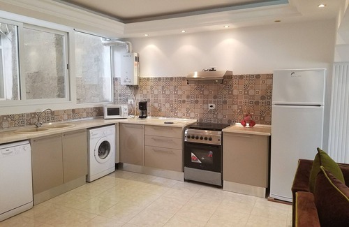 , the whole is open on the fully equipped kitchen which gives a view on the balcony and the lake of bizerte (dishwasher washing machine washing machine coffee machine fridge gas cooker extractor hood). the city center is located 3 minutes by car and barely 10 minutes on foot. The first beach of bizerte is 5 minutes by car; The capital TUNIS is 40 minutes by car from the highway. This magnificent holiday apartment is waiting for you to spend a pleasant holiday. It is located on the second floor.