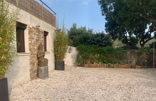 Beautiful new 70m2 apartment with terrace and garden on the ground floor of a villa in a residential complex in the Valcros area near the golf course a few km from the beaches of La Londe with shaded garden area with barbecue