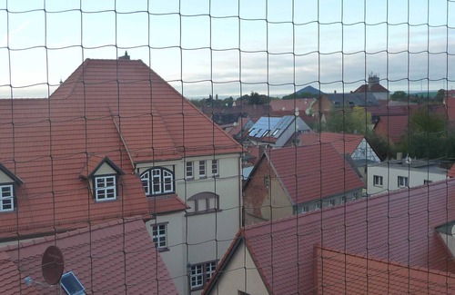 Modern furnished bright spacious apartment with large living room, two double bedrooms and a single bedroom, a fully equipped kitchen and a spacious bathroom with shower and toilet, which offers two washing places. You have an impressive view of the Vorwerk pond, the medieval castle Allstedt and the historic Wigbertiturm. Take advantage of the diverse destinations in the beautiful surroundings around Allstedt, maybe even by bike. Rental is possible is mediated. To relax, you can feel at home and use all Conveniences with us, of course. The extra beds be done up a floor, with a double bed and an air bed, but are only accessible from this apartment. This is the fourth Bedroom.