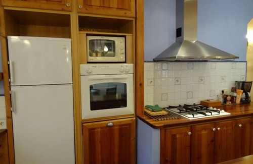 3-room apartment 90 m2 on 3rd floor. Comfortable and rustic furnishings: living/dining room with 1 sofabed (120 cm, length 180 cm), dining table, digital TV and hi-fi system. 2 rooms, each room with 1 french bed. Open kitchen (4 hot plates, oven, dishwasher, microwave). Bath/bidet/WC. Gas heating. Balcony. View of the resort and the river. Facilities: washing machine, iron, children's high chair, baby cot for up to 2 year olds, hair dryer. Internet (WiFi, free). HUTG000250 ESFCTU000017004000194172000000000000000000HUTG0002503