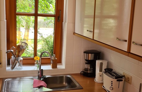 There is also a fully equipped, small kitchen with a refrigerator, oven, stove and coffee maker and crockery. The apartment is non-smoking.