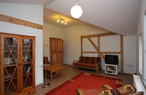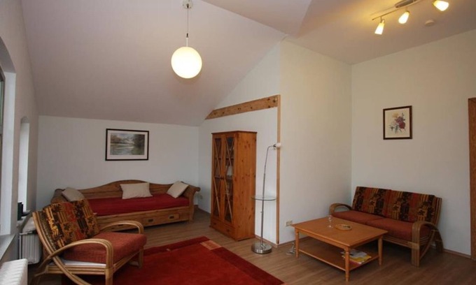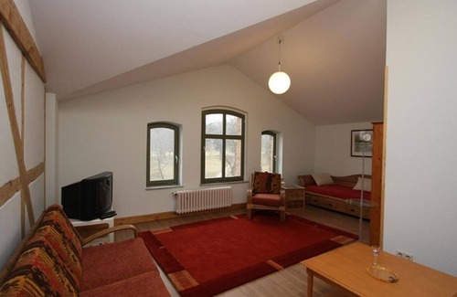 Two individually and lovingly furnished spacious apartments on the upper floor of a listed building, right on the Bode Valley. The apartments each have 2 rooms with private entrance and have a fully equipped kitchenette. Final cleaning is charged and applied to the price per night. Sheets and towels included. The use of the sauna and wellness area of the Bodetel Therme are included in the room rate.