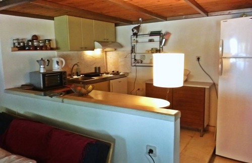 Floor level : Kitchen (fully furnished -coffee maker- oven) and a sofa bed.