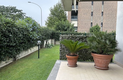 Apartment with bedroom for 2 complete with bedside people, dresser, wardrobe and mirror. full bathroom with a private garden window, small storage room, living room with sofa bed for 2 persons and a kitchen with fridge, freezer, oven, dishwasher, stove etc ... .Giardino with local washing machine and veranda. private parking, satellite TV and wi-fi throughout the apartment. Heating and air conditioning.