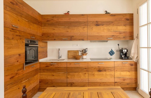 The property is environmentally conscious: energy-saving lighting, photovoltaic panels, sustainable insulation materials, and biodegradable products for personal and household cleaning, as water is recycled for plant irrigation.