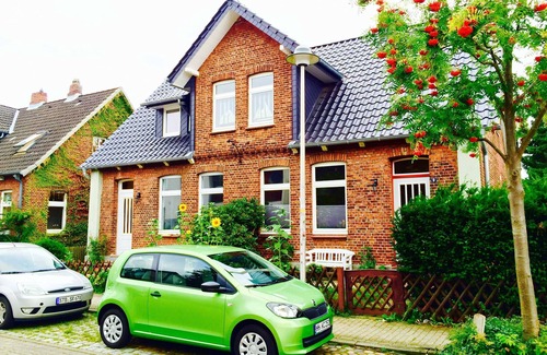 More than just a holiday apartment: The brick-built semi-detached house typical of northern Germany was built around 1890 and carefully but extensively renovated in 2015. Both halves "starboard" and "port" have like a terraced house completely separate entrances, small gardens and a shed for barbecue and bicycles. The "port side" half (about 80 square meters) has on the ground floor a fully equipped kitchen with patio door to the garden. Living room and dining area are generously designed, six people find the table good place, with eight is synonymous. Two bedrooms and the bathroom are on the first floor. There we have a room with a large double bed and one with two single beds, which can be put together to a double bed. For children there is the possibility to build an extra bed here. All this also applies to the slightly smaller "starboard" half (about 70 square meters), only there is no separate dining area, but sitting comfortably in the kitchen, space is there for four to five people. Of course we also have a living room there to relax. Two bedrooms are upstairs, each with 2 beds. The beautiful Altbautreppe can be a bit steep for some guests. The shower room and an additional guest toilet are located below.