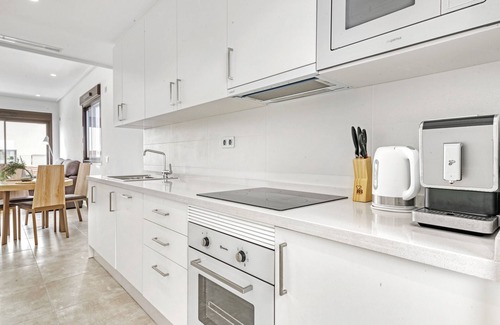 Located in Torre de la Horadada, the holiday apartment Porto Marina Village has everything you need for a relaxing holiday. The 70 m² property consists of a living room, a well-equipped kitchen, 2 bedrooms and 2 bathrooms and can therefore accommodate 4 people. Additional amenities include high-speed Wi-Fi (suitable for video calls), a TV, air conditioning as well as a washing machine. On top of that, a shared gym and gym equipment are also provided for your enjoyment.