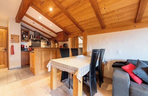 In the heart of the Aravis mountains, you'll find a mountain chalet atmosphere with a fireplace, beams and a mountain corner.