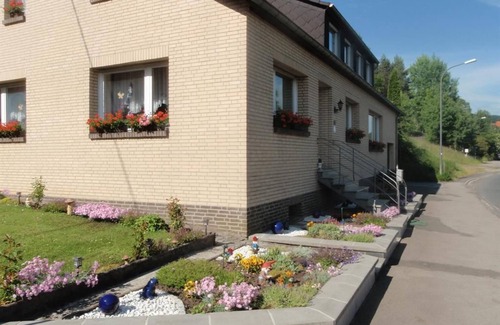 Fully equipped 3-star apartment with approx. 80 m², 2 bedrooms, sep. Kitchen with dishwasher and ceramic hob, shower / WC, free Wi-Fi, satellite TV and living room with balcony - beautifully located near the forest. Many holiday activities are in the immediate vicinity. Also very popular among fossils and minerals collectors.
