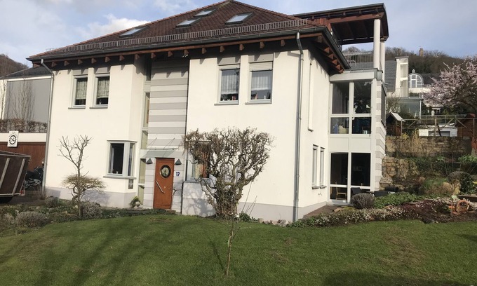 Live in a wonderful, quiet area and use our well-tended guests. The terrace invites you to relax after using your own infrared sauna. Vineyards and forest of the Hessische Bergstrasse are only 200 m from the house. The living-bedroom has a small kitchenette and you can start the grill on the wonderful terrace. Of course there is free WiFi and flat screen TV