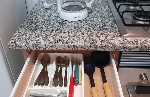 Composed of a living room, a bedroom, a bathroom and a separate kitchen equipped with an electric oven, an extractor hood, a hot plate, and storage units. The apartments are equipped with internet, air conditioning split system and central heating. The parking space is reserved in the basement.