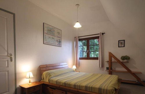 Upstairs: Open living space divided into three parts: - relaxation area, TV, - fitted kitchen (oven, microwave), - rest area with 1 double bed, - shower room with wc and washing machine. Exterior: - unenclosed garden In a green area (not enclosed), not far from the Boucles de la Seine regional natural park, comfortable studio on the first floor of an outbuilding in a traditional enclosed hovel with embankment, apple trees and unprotected pond. On site, another independent cottage G2016 Rental charges not included in your rental: - heating, - electricity (payment for electricity after meter reading on arrival and departure beyond 8 kw/h per day, at cost price), - sheets, - linens, - Household chores, - the tourist tax. Television, Electric heating, Internet connection, Private car park, Washing machine, Linen rental, Cleaning fee, Garden, Garage, Animals accepted, Microwave, DVD player, Flat screen TV, Freezer, Garden furniture, Barbecue, Detached house . Option to be paid on site: Cleaning charge: €30. Sheets for a double bed: €8. Household linen kit (towels): €4. Comfort Pack 1 pers. (sheets, towels, cleaning): €36. Couple Comfort Pack (double bed sheets, towels, cleaning): €40. Unless stated, services such as cleaning, bed linen, towels etc. are not included in the price of this rental. If pets are allowed (information in the advertisement), charges may be applicable. Only equipment mentioned in this advertisement are present. Equipment not mentioned are not considered to be present.