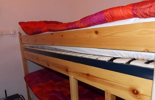 SUPERBAGNERES "RESIDENCE LES SARNILLES" APARTMENT FOR 6 PEOPLE ON THE 1ST FLOOR WITH ELEVATOR. ON ENTERING, ON THE LEFT A CABIN CORNER WITH 2 BUNK BEDS. THE BATHROOM AND WC. THEN A LIVING ROOM WITH BALCONY AND VERY PRETTY VIEW ON THE SLOPES AND THE MOUNTAIN. IN THIS STAY IS A CLIC CLAC FOR 2 PEOPLE A TELEVISION, A BUFFET AND THE EQUIPPED KITCHENETTE (oven, vitro plate). A BEDROOM WITH A 140 BED, A LARGE CUPBOARD AND BEDSIDE TABLES. THE FLOOR IS COVERED WITH A FLOATING PARQUET. SKI LOCKER. PETS NOT ALLOWED Unless stated, services such as cleaning, bed linen, towels etc. are not included in the price of this rental. If pets are allowed (information in the advertisement), charges may be applicable. Only equipment mentioned in this advertisement are present. Equipment not mentioned are not considered to be present.