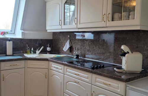 The bright, spacious apartment with many windows and a beautiful view of nature invites you to linger and relax. The vacation home is located on the upper floor and was newly furnished in 2020 with modern furnishings, high-quality furniture and lovely details. The large TV in the living room (55 inches) can be swiveled so that you can comfortably adjust the correct position. The apartment can be reached via a separate entrance. Upon arrival there is a welcome drink and on Sundays your landlords offer you a bread delivery service.