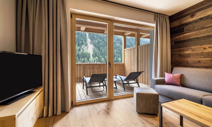 The well-furnished and energy-efficient apartment “Seebrunn - Kühberg Alm” belongs to the recently opened Seebrunn Residence, situated in the village of Kuppelwies, and is ideal for relaxing holidays in the beautiful South Tyrolese Alps. The 58 m² apartment consists of a living room, a well-equipped kitchen with a dishwasher, 2 bedrooms (one with 2 single beds) as well as one bathroom and an additional toilet and can therefore accommodate 4 people. Additional amenities include Wi-Fi, satellite/cable television, a baby cot, a children’s bed and a highchair (all 3 on request). You can start the day with coffee on the balcony or the private covered terrace with great views of the reservoir and the surrounding mountains. The communal outdoor area boasts a garden and a barbecue for you to cook your own tasty dinners, as well as a playground area for children. Within 200-500 m you can find a café, a restaurant, a bus stop and an E-bike rental. Bigger supermarkets can be found a 5-minute drive (4 km) away in St. Walburg. The reservoir “Zoggler Stausee” is only 500 m from the residence and offers nice walking tours around the water. In winter, the ski lift “Schwemmalmbahn” is only 750 m away and takes you to several nice slopes. Furthermore, an ice rink and cross-country ski tracks are also closeby. The mountainous region boasts great opportunities for hiking and cycling, and once a week an alpine hike with the homeowner to the most beautiful alpine pastures in the Ulten Valley is organised. The city of Merano, well-known for its spa resorts and architectural beauty, is located a 45-minute drive (30 km) from the property and also invites you to go shopping or explore the many great restaurants serving local cuisine. South Tyrol’s capital Bolzano lies 58 km (a one-hour drive) from the property.