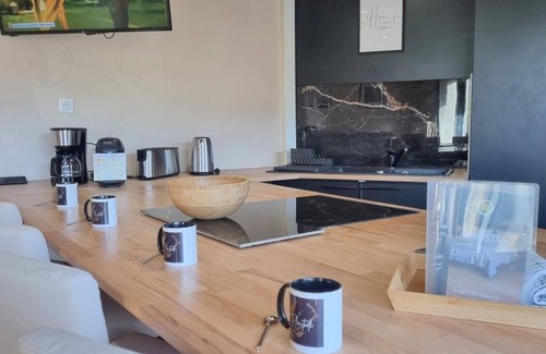 73m² apartment on the 3rd floor without elevator, with a beautiful living room with fitted and equipped kitchen open to the dining area and the living room. This bright living room thanks to its 3 bay windows allows direct access to a balcony. We find the beautiful suite with a 180x200cm bed with television and wellness area (whirlpool bath, shower). The apartment has a private parking space in the courtyard of the building. Only 200 m from the train station, with shops and services nearby, this warm and dual-aspect apartment is located on the 3rd floor of a small condominium. Valérie & Richard welcome you to their furnished "Plénitude" fully equipped and renovated with taste, modernity and comfort. The accommodation is equipped with a private wellness area with a 2-person whirlpool bath to offer you moments of relaxation. To make your stay even more enjoyable, heating, electricity & gas charges are included, beds are made on arrival and bed linen is provided.