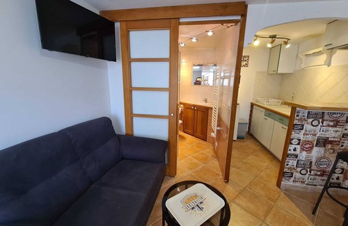Boasting a beautiful view of the mountain, the holiday apartment Studio Vintage is located in Carnoules. The 22 m² property consists of a living room, a fully-equipped kitchen, 1 bedroom and 1 bathroom and can therefore accommodate 2 people. Additional amenities include Wi-Fi, a smart TV with streaming services, a fan as well as a washing machine. On top of that, a shared gym and gym equipment are also provided for your enjoyment. A baby cot and a high chair are also available.