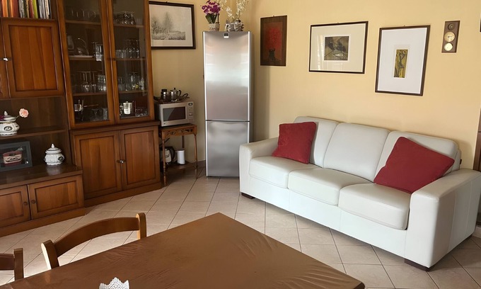 Located in Montesilvano, this bright and quiet 65 sqm apartment can accommodate up to 6 people, with 2 bedrooms and a living room. The spacious main bedroom has a double bed, while the smaller bedroom is equipped with 2 single beds that can be converted from a sofa. In the living room you will find a comfortable sofa bed. The private kitchen is fully equipped with a traditional oven, microwave, and dishwasher. Additional amenities include a washing machine, air conditioning, Wi-Fi, TV, and barbecue to make your stay even more enjoyable.