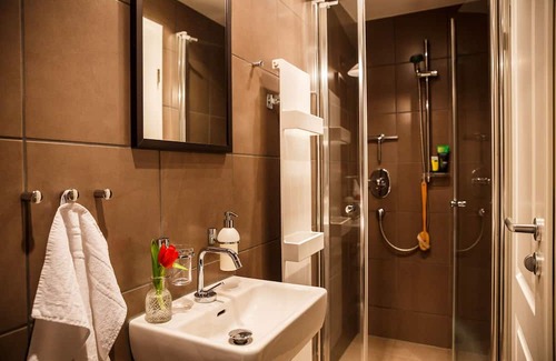 The house, which is divided into private residential and holiday home, was built in 1879 and was in the 20. Century among other things a Holzschuhfabrik with Wassermühlenantrieb. The apartment is located in the outbuilding of our house. It is equipped with two bedrooms, each with a double bed, a closet and an attached bathroom with shower and toilet. The sofa in the living area can be folded out and offers two additional beds if required. For small guests a travel cot and two high chairs are available (please inquire in advance). Everything you need for self-sufficiency is in the modern kitchen. Satellite TV and underfloor heating are also available. Right behind the house the little river Biela splashes. In the garden there is a cozy seating area where you can barbecue and enjoy balmy summer evenings. The house, in which there is a second apartment next to this, is accessible via a separate entrance. We live in the neighboring house and are always available for questions or for tips and information.