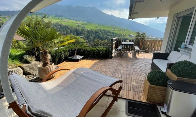 Best-rates for the Aeschlen ob Gunten apartment starts from $266 per night with includes Laundry, TV, Wheelchair Accessible, Balcony/Terrace, Child Friendly, Hot Tub, Internet, Kitchen with all other amenities. Perfect for Weddings is committed to ensuring every guest experiences a comfortable and extraordinary stay, whether planning a romantic getaway, a honeymoon, a pet-friendly stay, or celebrating with the entire wedding party.