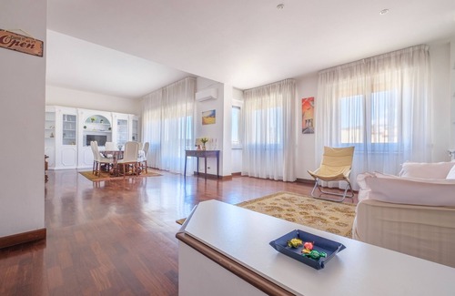 The holiday apartment Treviso 4 is located in Reggio Calabria and is perfect for an unforgettable holiday with your loved ones. The 140 m² property consists of a living room with a sofa bed for 2 people, a fully-equipped kitchen, 2 bedrooms and 2 bathrooms as well as 2 additional toilets and can therefore accommodate 6 people. Additional amenities include a dedicated workspace for home office, air conditioning, a TV, Wi-Fi, a washing machine as well as children's books and toys. A baby cot and a high chair are also available.