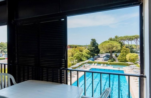 "Trilo", 3-room apartment 55 m2, on the upper floor. Practical and modern furnishings: living/sleeping room with 1 sofabed, dining table, digital TV, flat screen, electric heating and air conditioning. Exit to the veranda. 1 double bedroom. Exit to the veranda. 1 room with 3 beds. Open kitchen (4 induction hot plates, microwave, electric coffee machine, Capsules for coffee machine (Nescafe Dolce Gusto) extra). Shower/bidet/WC. Balcony 14 m2. Balcony furniture. View of the swimming pool. Facilities: children's high chair, baby cot for up to 2 year olds (extra), hair dryer. Internet (WiFi, free). Please note: maximum 1 pet/ dog allowed. Fire extinguisher. IT049001B4AEH7IC3H
