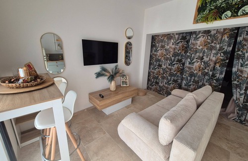 Located in Les Taillades, in Provence-Alpes-Côte d'Azur, this carefully furnished 50 m² apartment is ideal for up to 4 guests. It offers a bedroom with a comfortable 160x200 cm double bed and a bathroom with toilet. The space combines a fully equipped kitchen and a small living area with a dining counter, creating a functional and welcoming environment. Your stay includes private Wi-Fi, air conditioning, a television, and breakfast with local products to start your day well. A private jacuzzi area is available for an extra fee, adding a relaxing touch to your stay.