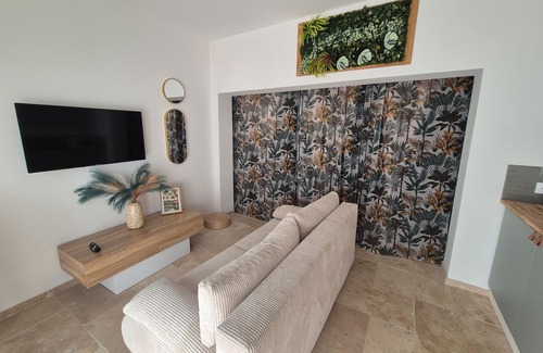 Located in Les Taillades, in Provence-Alpes-Côte d'Azur, this carefully furnished 50 m² apartment is ideal for up to 4 guests. It offers a bedroom with a comfortable 160x200 cm double bed and a bathroom with toilet. The space combines a fully equipped kitchen and a small living area with a dining counter, creating a functional and welcoming environment. Your stay includes private Wi-Fi, air conditioning, a television, and breakfast with local products to start your day well. A private jacuzzi area is available for an extra fee, adding a relaxing touch to your stay.