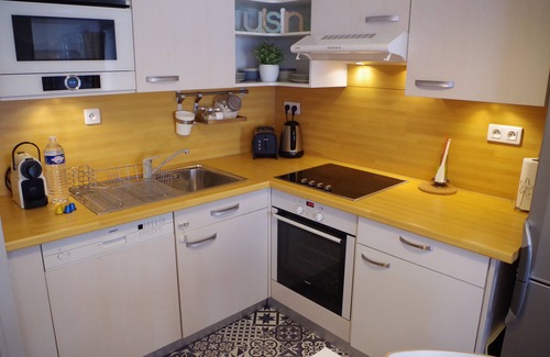 The apartment is fully equipped, on 1st floor with elevator and private underground parking space. (additional 10€/day for parking ; week and month special rate offer)
