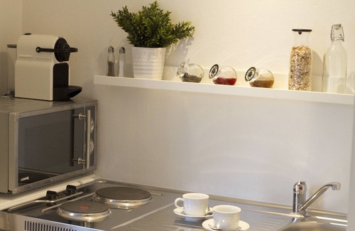 -A kitchenette equipped with all the essentials (coffee, condiments, etc.)