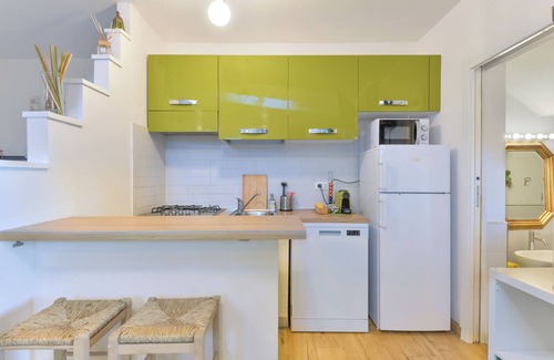 Surrounded by the lush nature of Elba, Villa Sterlizia houses the apartment "Villa Sterlizia-Verde", located not far from the village of Lacona. The modern studio, recently renovated, features a living area, a well-equipped kitchen with dishwasher, a bathroom, and can accommodate up to 4 people. Additional amenities include Wi-Fi (suitable for video calls), air conditioning, satellite TV, and a washing machine. The accommodation is also suitable for children and offers a cot and a high chair.