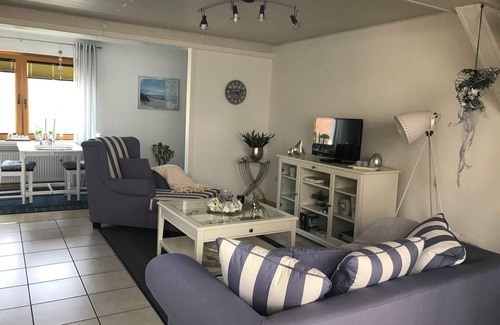 4 total beds (1 holiday apartment) This apartment with a size of approximately 68 sqm is designed for 4 people. The apartment has a separate exit to the spacious garden, which can also be used as a sunbathing area. There is also our barbecue hut for cozy hours. Each apartment has a parking space on the premises. Sheets and towels are provided. In the spring of 2016, the apartment was completely renovated, u. a was a new bathroom, instead of the previous bathtub, with a spacious shower, built ..