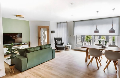 The modern furnished apartment offers a high level of comfort for your best days of the year. The high-quality, well-equipped kitchen invites you to experiment with culinary delights. The bright living/dining room has WLAN, Internet radio and TV. The bathroom has a bathtub and rain shower. In the bedroom, a 180x200 cm box-spring bed ensures a restful night's sleep.