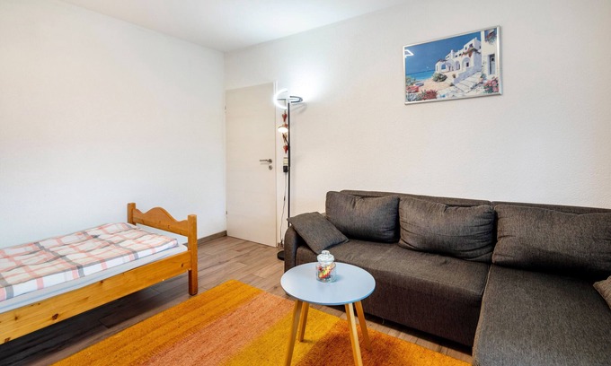 The Wasserturmblick holiday flat is located in Bebra and offers a view of the mountain. The 60 m² accommodation consists of a living room (1 single bed), a fully equipped kitchen, 1 bedroom (1 double bed + 1 single bed) and 1 bathroom and thus offers space for 4 people. The equipment also includes high-speed WLAN (suitable for video calls) and a Smart TV.