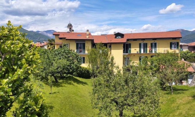 Cosy resort "Giardino del Bosso", 3 storeys. 7 apartments in the property. In the centre of Germignaga 1.5 km from the centre of Luino, excellent location: right in the centre but still quiet, 600 m from the lake. For shared use: garden 700 m2 with lawn and trees. Patio, barbecue. Motor access to the house. 60 m footpath to the house. Supermarket 1 km, bar 200 m, bakery, café, bus stop "Luino-Germignaga-Porto V.-Laveno" 400 m, railway station "Luino" 2 km, grass beach 900 m. Hiking paths: Germignaga - Bosco delle fate - Brezzo 300 m. Please note: no lift. Suitable for families. Residence with electric gates. The owner lives in the same residence.