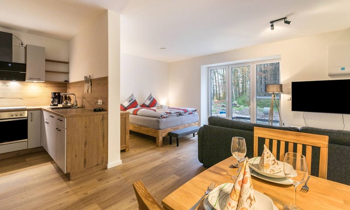 Best-rates for the Husbyholz apartment starts from $183 per night with includes Kitchen, Pet Friendly, TV, Balcony/Terrace, Accessibility, Security/Safety, Wellness Facilities, Fireplace/Heating, Child Friendly, Parking, Bedding/Linens, Internet with all other amenities. Perfect for Weddings is committed to ensuring every guest experiences a comfortable and extraordinary stay, whether planning a romantic getaway, a honeymoon, a pet-friendly stay, or celebrating with the entire wedding party.