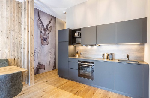 In our 41 to 48 m² apartment with one bedroom and a balcony, as many as 2 to 4 people will feel completely at home. Your holiday apartment features 1 bedroom, 1 bathroom with WC / shower (hairdryer), a living room, an open kitchen and a balcony. You will be sleeping on a comfortable double bed. In the living area, there is also a double sofa-bed sleeping 2 additional people. The kitchen is fully equipped. In other words: Kitchen amenities include cutlery, crockery and pots & pans, a ceramic range, oven, microwave, dishwasher, refrigerator with freezer, along with other appliances such as a toaster, electric kettle and coffeemaker (capsule (Nespresso) machine). A small ALPS RESORTS starter set including dishwasher tab, dishwasher detergent (sample size), sponge, trash bag, cleaning cloth and dishcloth is provided for you upon arrival. Each accommodation comes with an assigned parking space in the underground garage, where you can park your car during your stay.Wi-Fi included. All pictures are intended as examples only. Each unit is individually furnished.Zillertal Suites Fügen by ALPS RESORTS: •Holiday apartments in Fügen im Zillertal, Tirol •Wellness area with heated outdoor pool and saunas •850 m from “Spieljochbahn” cable car, 750 m from the thermal spa “Erlebnistherme” •Guest card Erste Ferienregion Zillertal included •Parkinggarage available (free of charge)